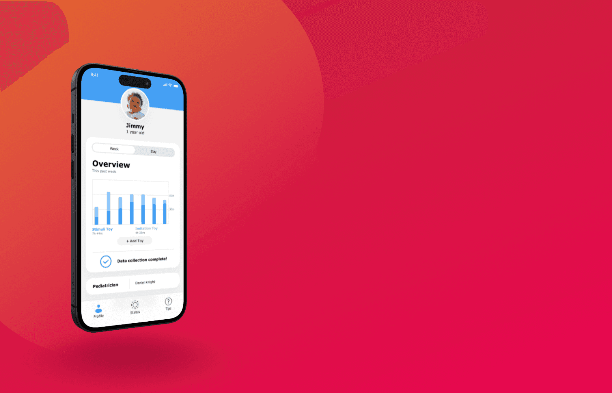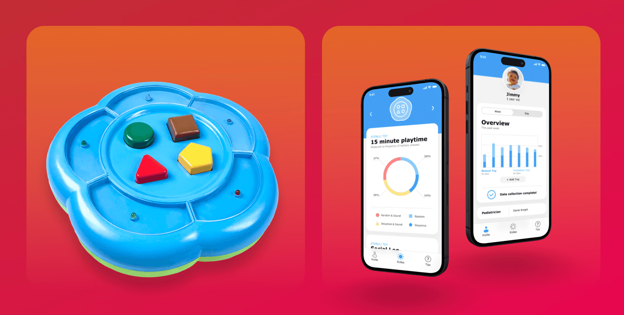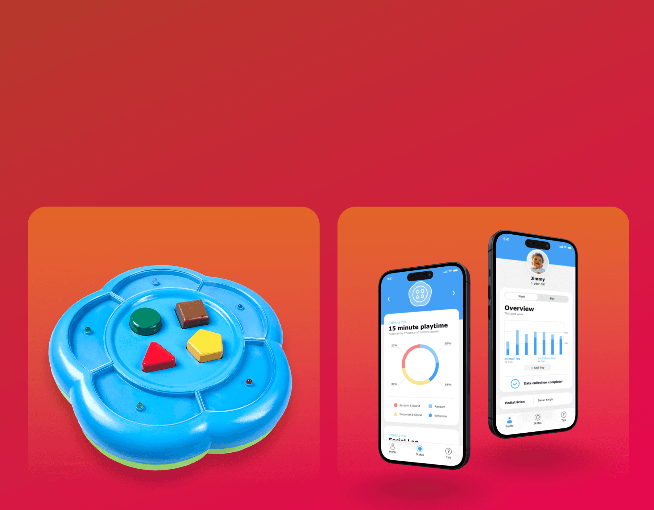 To complement the toy, I developed a simple app that helps parents and pediatricians understand the analysis collected from the child’s interaction with the toy.