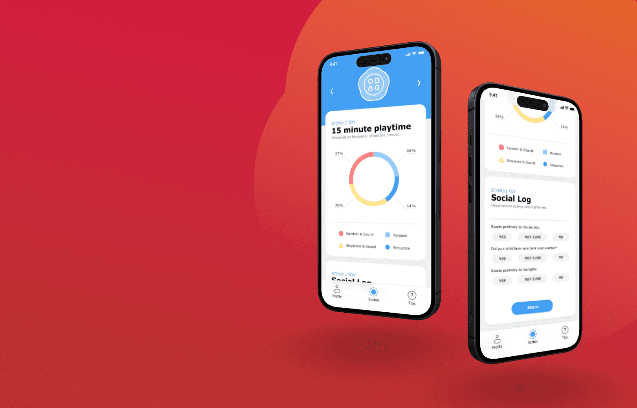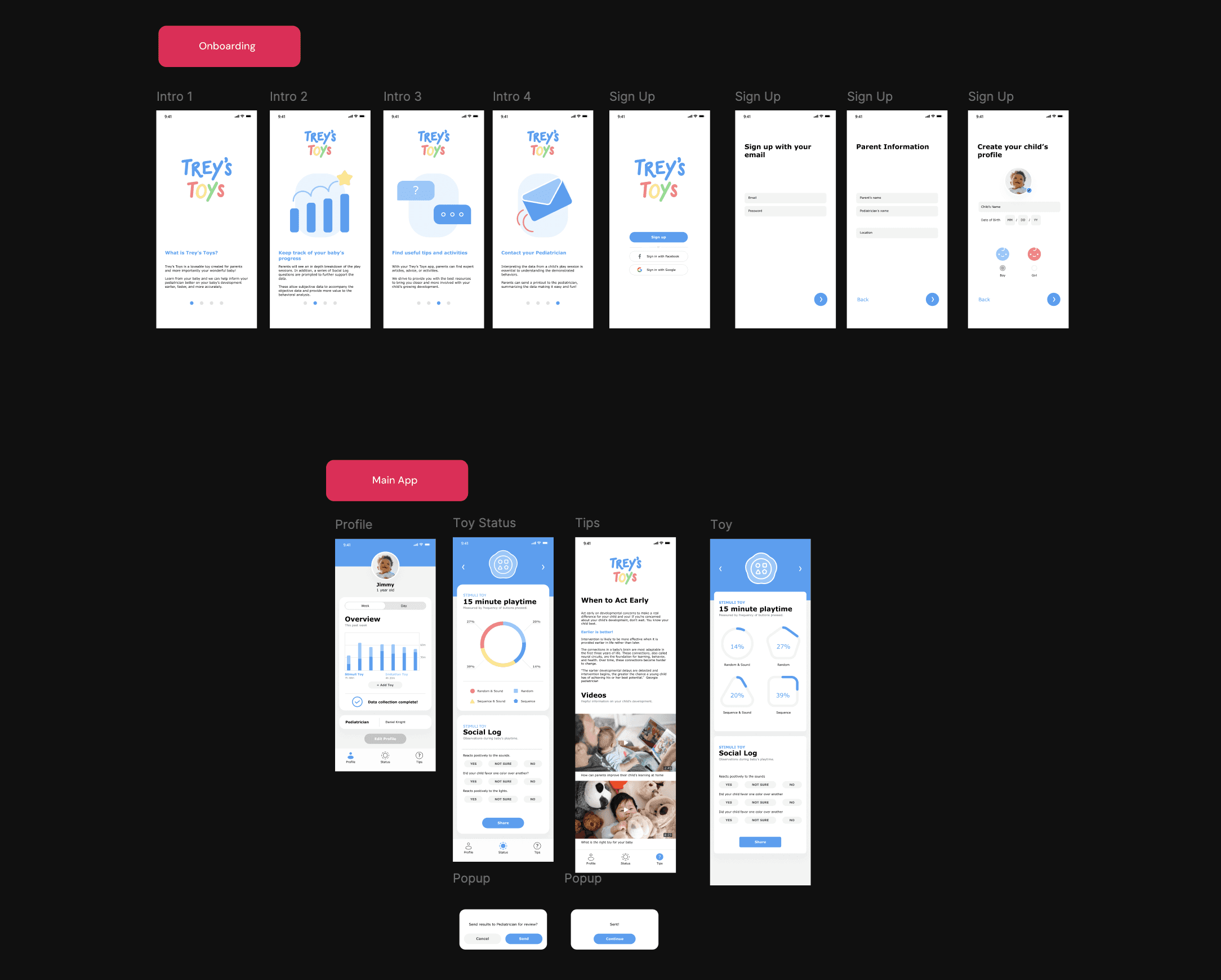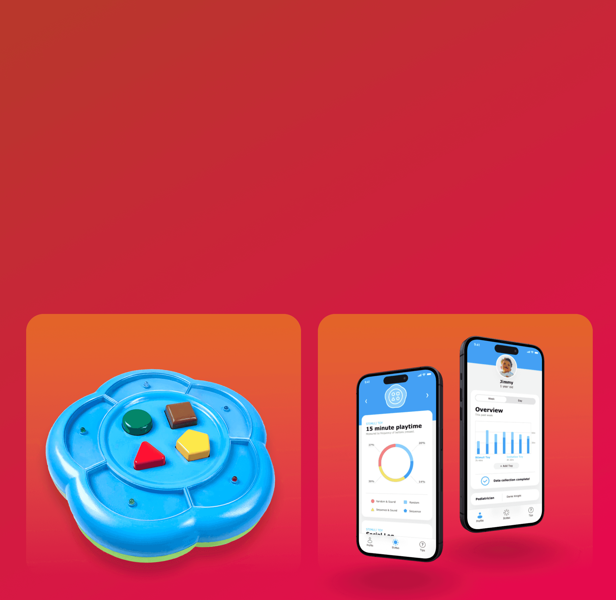 To complement the toy, I developed a simple app that helps parents and pediatricians understand the analysis collected from the child’s interaction with the toy.