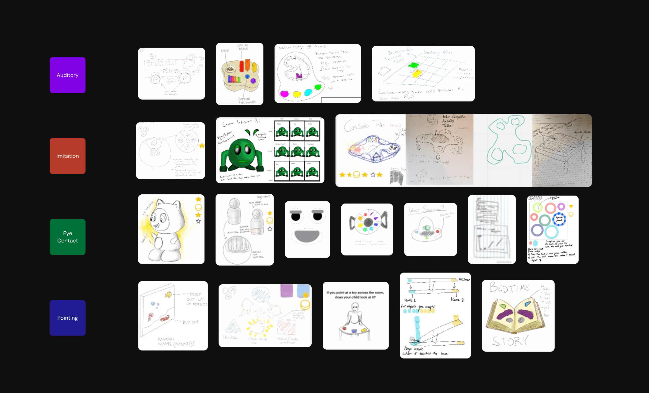 Current diagnostic tools rely on observation, including questionnaires, checklists, and pediatrician assessments. While therapy toys exist, diagnostic toys are repurposed from existing options and lack direct child input measurement or feedback for parents and practitioners.
